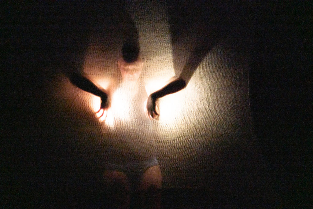 This piece began during a Generating Room residency in the Cowles Center’s Target Studio as a response to the overwhelming social message that disabled people would be better off dead. In grappling with the medical industrial complex to receive a wheelchair and get other basic needs covered, I used my time in the studio to venture into the underground realm of the dead. Unexpectedly, instead of finding death and despair in the dark dirt, I felt connected to so many other forms of beyond-human life and experienced rest, warmth, care, and healing in that fertile space. In “As Below,” I bring audiences into the ground with me before returning to the domestic interior of a bedroom, which is where so much of my disabled life takes place. And after a bit of rest, I invite us to consider the possibility of disabled flight, taking to the air in a scene similar to that of my 2019 performance, “Flight Experiment #1.”